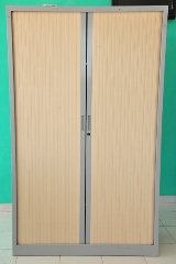 Armoire monobloc haute à rideau couleur Erable pouvant avec 4 palettes en fer conten
