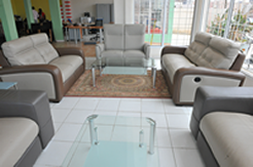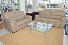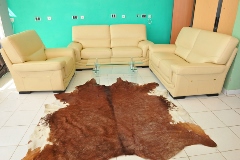 Salon en cuir de 6 places de couleur beige avec une très bonne mousse