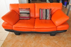 Un sofa en cuir confortable ,bicolore, beau patch de l'orange brulé et d