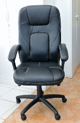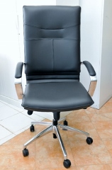 Fauteuil en cuir noir avec un haut dossier , composé d' un empiènement et des accou